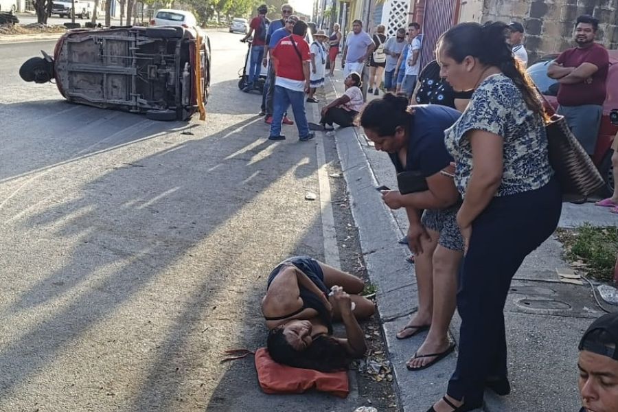 Un mototaxi se volcó en la región 248 de Cancún por exceso de velocidad y maniobras peligrosas; vecinos auxiliaron a los heridos y llamaron al 911.