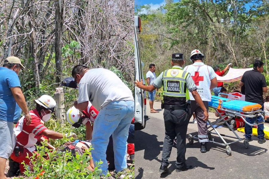 Tres accidentes en Felipe Carrillo Puerto dejaron varios heridos y un muerto; una van volcó y una mujer fue proyectada a la maleza con graves golpes.
