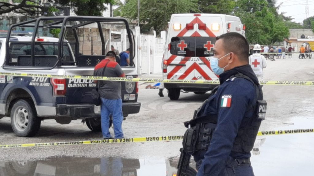 En tanto en Rancho Viejo, en la Región 236, un joven fue asesinado a balazos por un sujeto que se dio a la fuga esta tarde. La víctima, que vestía playera negra y shorts azules, falleció poco minutos después del ataque. Su cuerpo quedó tendido boca abajo sobre el camino de terracería, cercano a la avenida 20 de Noviembre.. Agentes de la Policía Municipal acordonaron la zona, llegando al poco tiempo la Fiscalía General del Estado a investigar esta última ejecución.