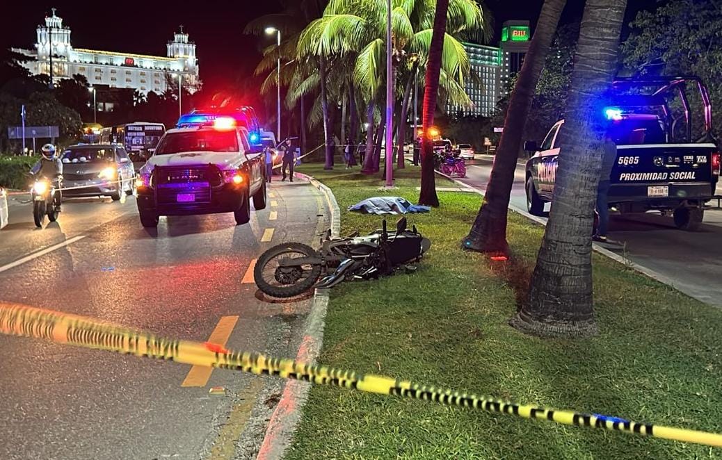 La zona turística en Cancún se vio envuelta en luto tras un fatídico accidente que cobró la vida de un joven motociclista en el kilómetro 8 del boulevard Kukulkán, a la altura del hotel Presidente.