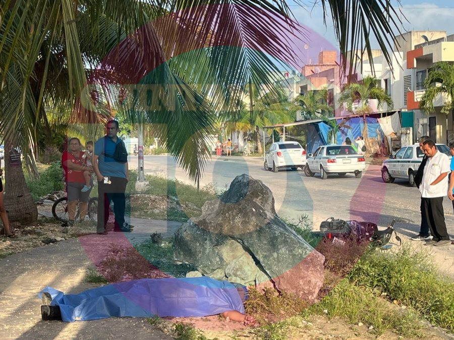 CANCÚN.- Un motociclista muere este lunes 12 de febrero luego de “volarse” un bache y derrapar, golpeándose la cabeza contra una roca, en Región 255.