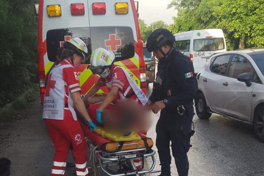 Cancún.- Un motociclista sufrió la amputación de un dedo tras chocar por alcance contra una camioneta tipo Urban sobre el Periférico, a la altura de la Región 247, en Cancún.