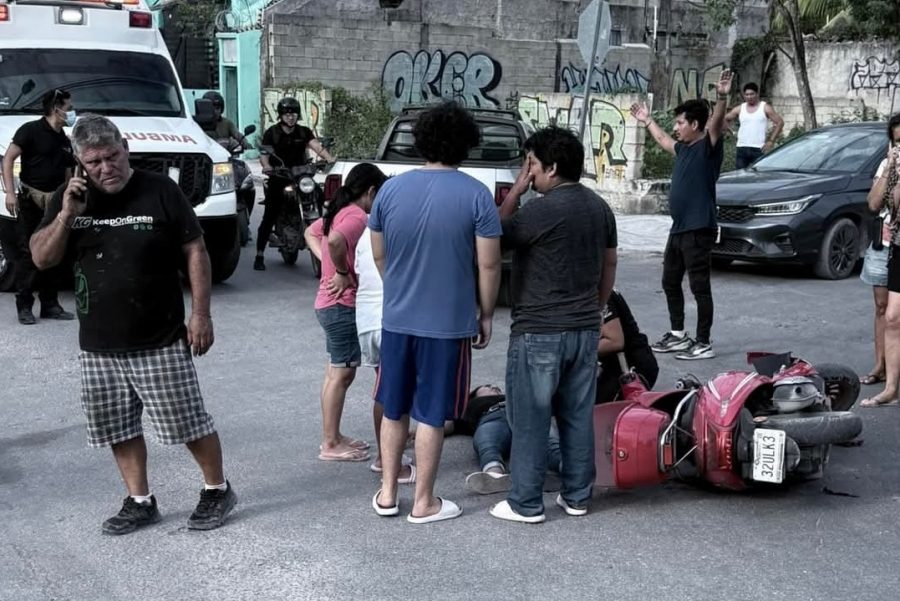 Motociclista resulta herida tras ser impactada por camioneta que invadió carril contrario en Tulum