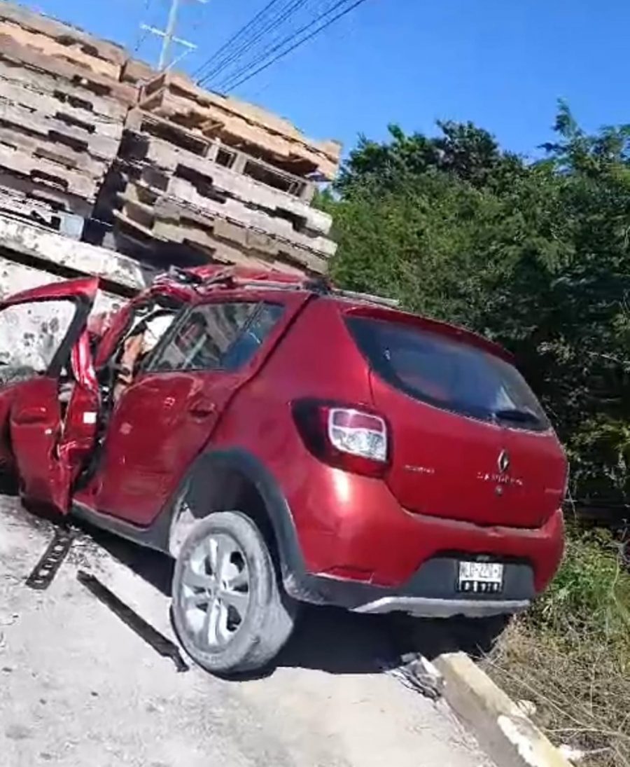 La víctima avanzaba de sur a norte en esta carretera federal, pero a la altura del parque Xcaret, chocó de lleno contra un camión de carga que trasladaba pallets, pero que estaba detenido, a eso de las dos y media de la tarde de hoy sábado.