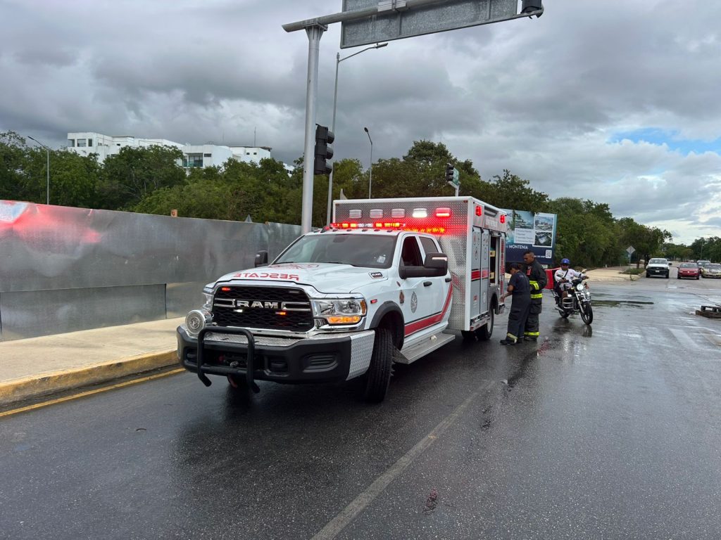 Playa del Carmen.- Una mujer quedó seriamente lesionada, al resbalarse en el pavimento y aterrizar sobre los pernos que fijan una luminaria, en la avenida 38 con Chemuyil.