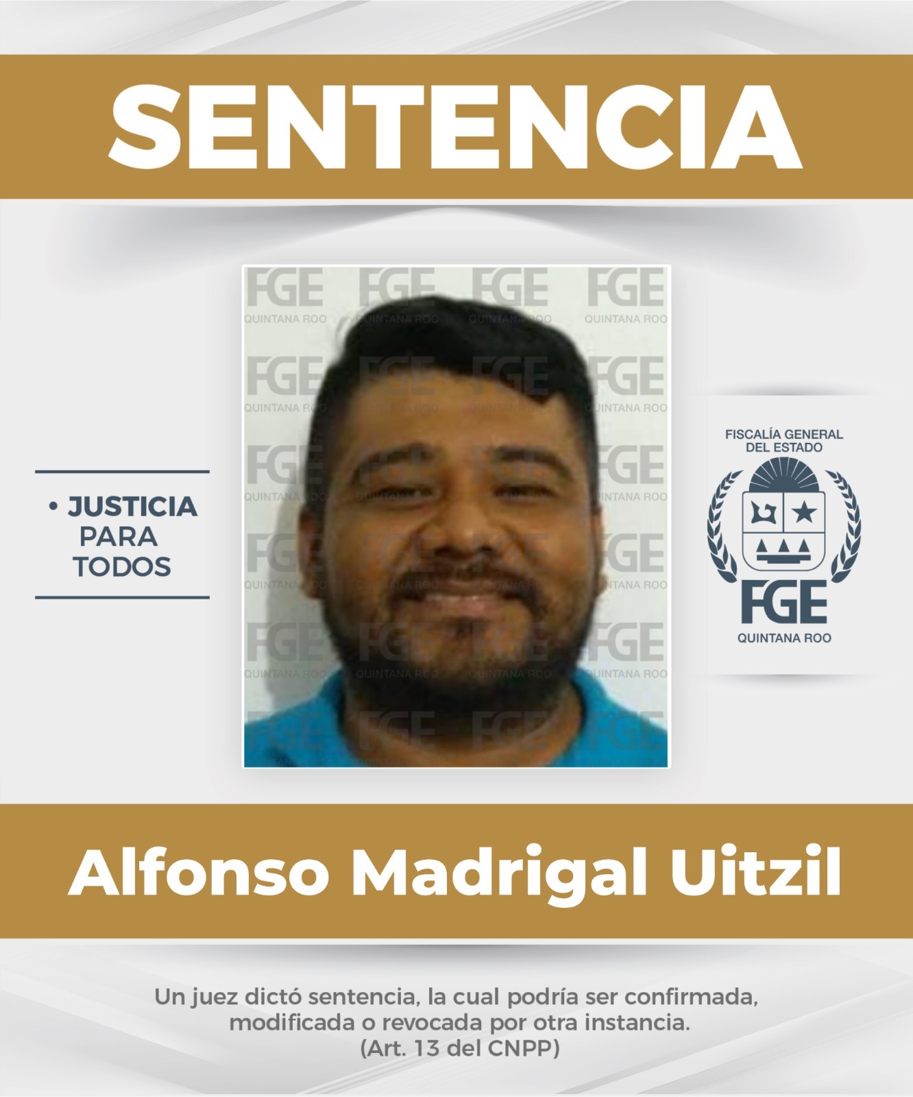 Cancún.- La Fiscalía General del Estado de Quintana Roo obtuvo sentencias de 37 años de prisión contra dos hombres por el delito de homicidio calificado en el municipio de Benito Juárez.