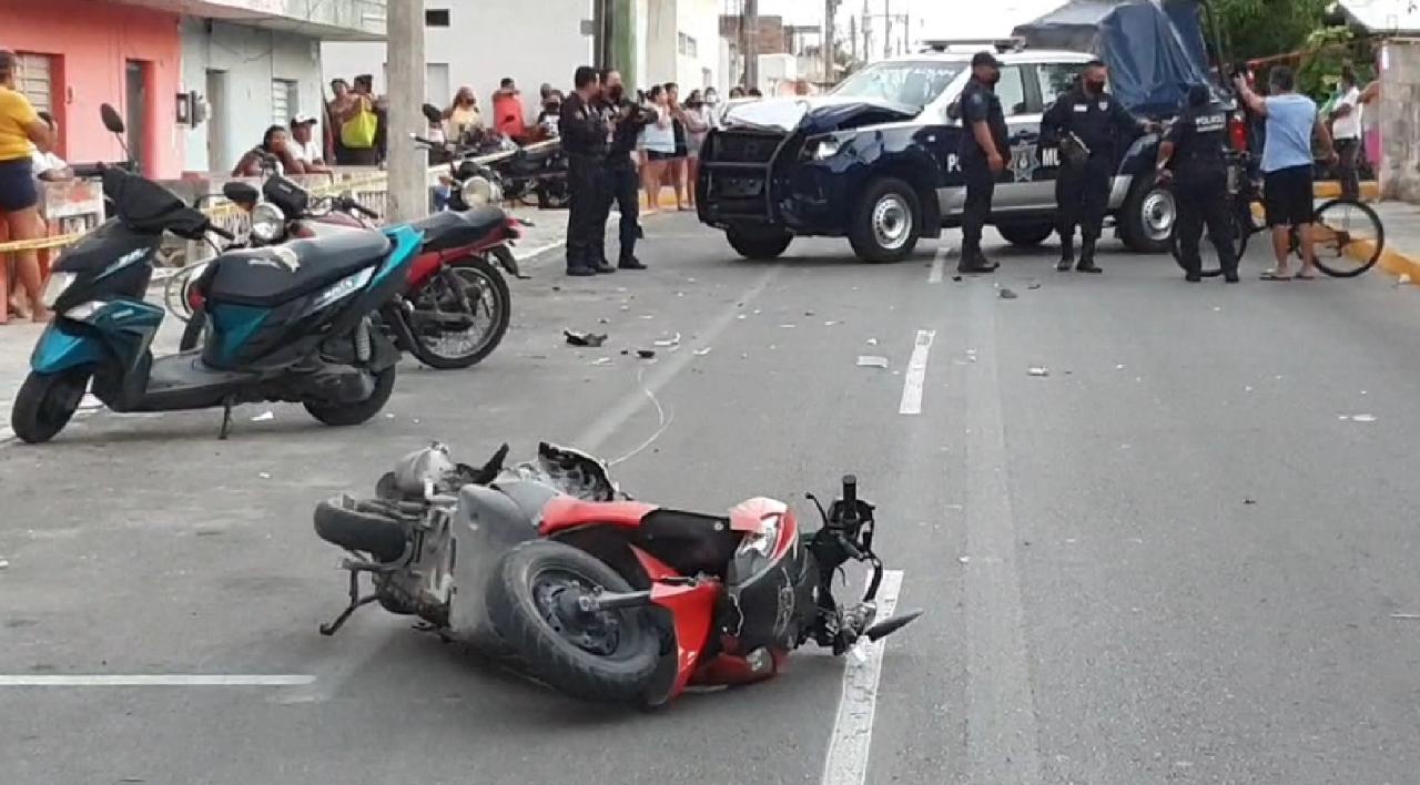 Cozumel.- Dos turistas quedaron heridos de gravedad, luego de ser atropellados por una patrulla de la Policía Municipal cuando viajaban en motocicleta, entre las calles 8 con 20 avenida.