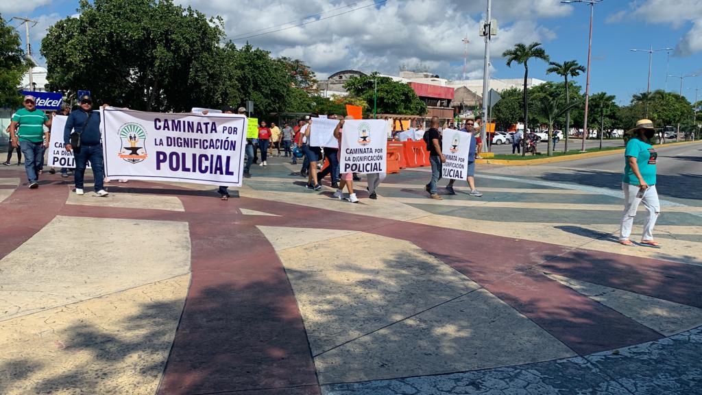 Iniciaron con la congregacion de agentes de seguridad de distintas corporaciones en el parque del crucero, para realizar una caminata pacífica hasta la explanada del palacio municipal sobre la avenida Tulum, donde aseguraron que no es competente el sueldo que reciben a pesar de estar arriesgando su vida al servicio de la ciudadanía.
