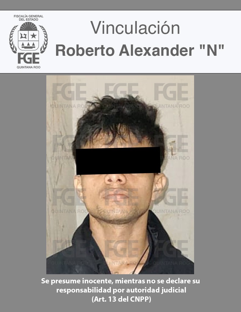 Tras su captura por elementos de la Policía de Investigación, Roberto Alexander “N”, en audiencia con datos de prueba aportados por la FGE de Quintana Roo, fue vinculado a proceso por la probable comisión de delitos contra la salud en la variante de suministro de cocaína. El órgano jurisdiccional también les impuso la medida cautelar de la prisión preventiva justificada.
