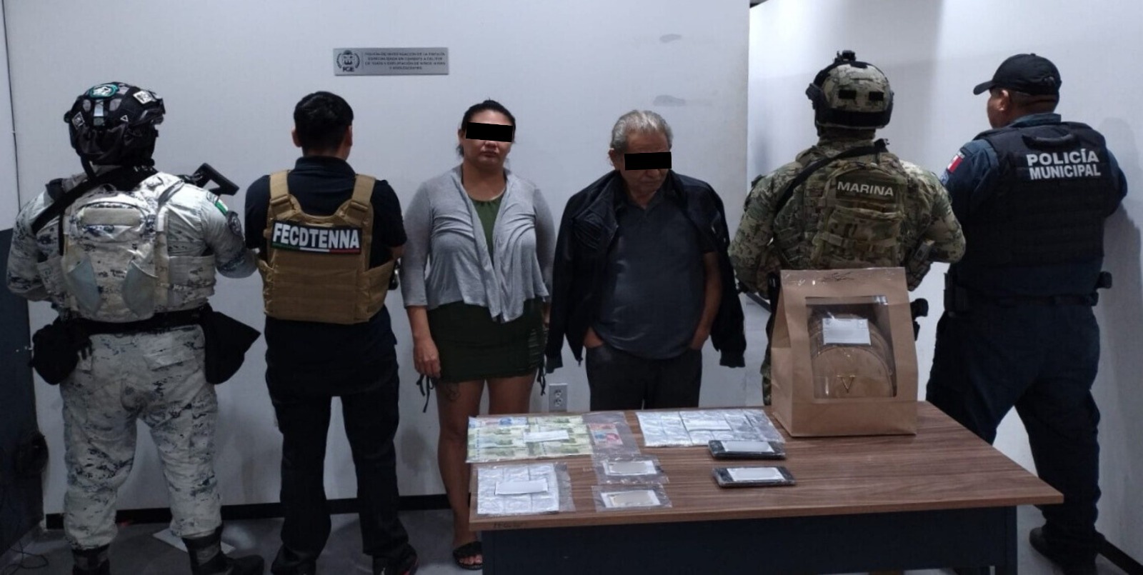 Durante el cateo fueron detenidos Guillermo “N”, presunto encargado del lugar, y Raquel Rubí “N”, señalada de cobrar los servicios. También aseguraron libretas, preservativos, una cámara de seguridad y presuntas drogas. El local fue sellado y quedó bajo resguardo de la Fiscalía, mientras continúa la investigación.