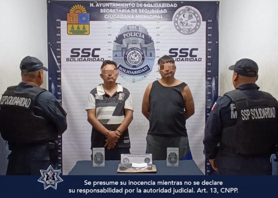 PLAYA DEL CARMEN.- En una rápida reacción, la Policía Municipal de Solidaridad detuvo a 2 sujetos y aseguró un arma de fuego en el fraccionamiento Villas del Sol, como parte del trabajo preventivo para mantener la paz social.