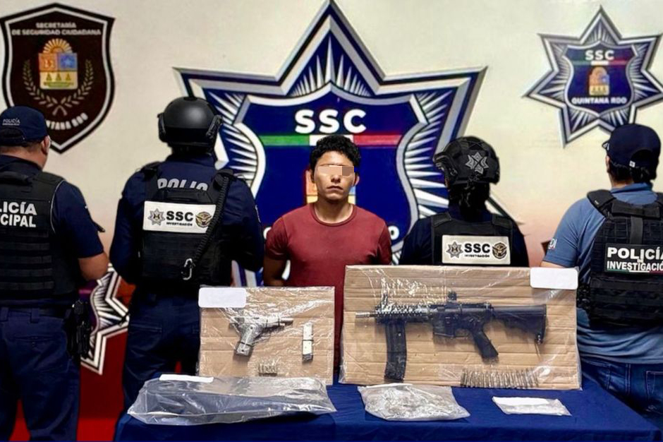 Cozumel.- Elementos de seguridad detuvieron a Emerson René “N”. Es señalado por delitos contra la salud. También por violación a la Ley Federal de Armas de Fuego y Explosivos.