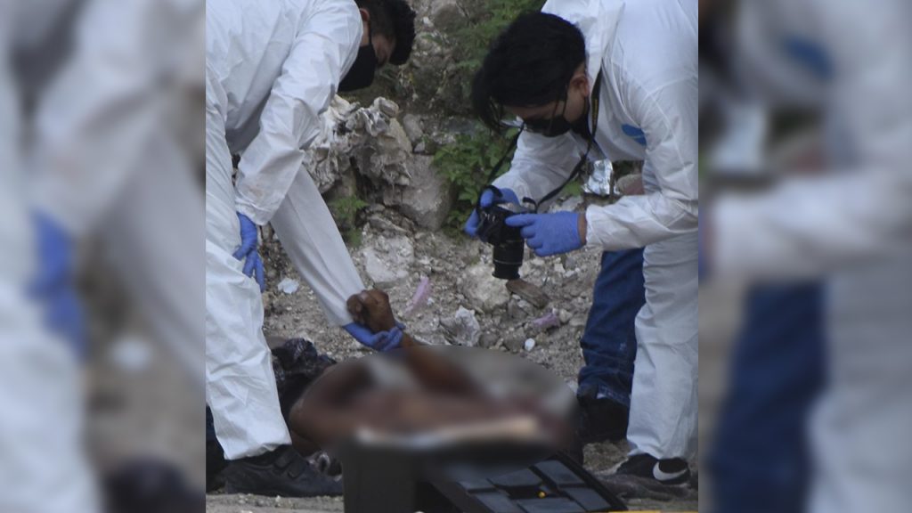 CANCÚN.- Un cuerpo ensabanado con una cartulina con un mensaje y con huellas de huellas de tortura y heridas de arma punzocortante en diferentes partes del cuerpo, sobre todo en la cabeza, fue hallado en un camino de terracería de la conocida colonia Los García de la Región 245, Cancún.