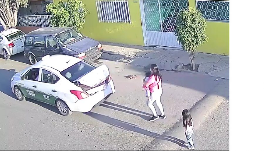 Según los reportes, los hechos ocurrieron en la tarde de ayer en el fraccionamiento San Felipe, en el municipio de Soledad de Graciano Sánchez, en la capital potosina. El vehículo involucrado fue un Nissan Versa con número económico “1890”. En el video capturado por una cámara de seguridad de la zona, se observa a una mujer con una niña en brazos y otra pequeña, que apenas podía caminar, descendiendo del vehículo.