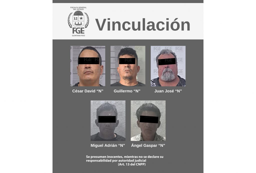 Cancún.- La Fiscalía General del Estado obtuvo de jueces de Control el auto de vinculación a proceso para cinco hombres, por su presunta relación en hechos posiblemente constitutivos de delitos contra la salud en su modalidad de narcomenudeo, en este municipio.