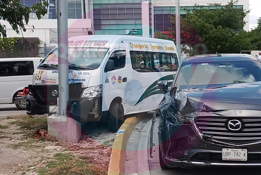 CANCÚN.- Varias personas quedaron con golpes esta mañana luego de un accidente frente a Plaza Las Américas de Cancún.