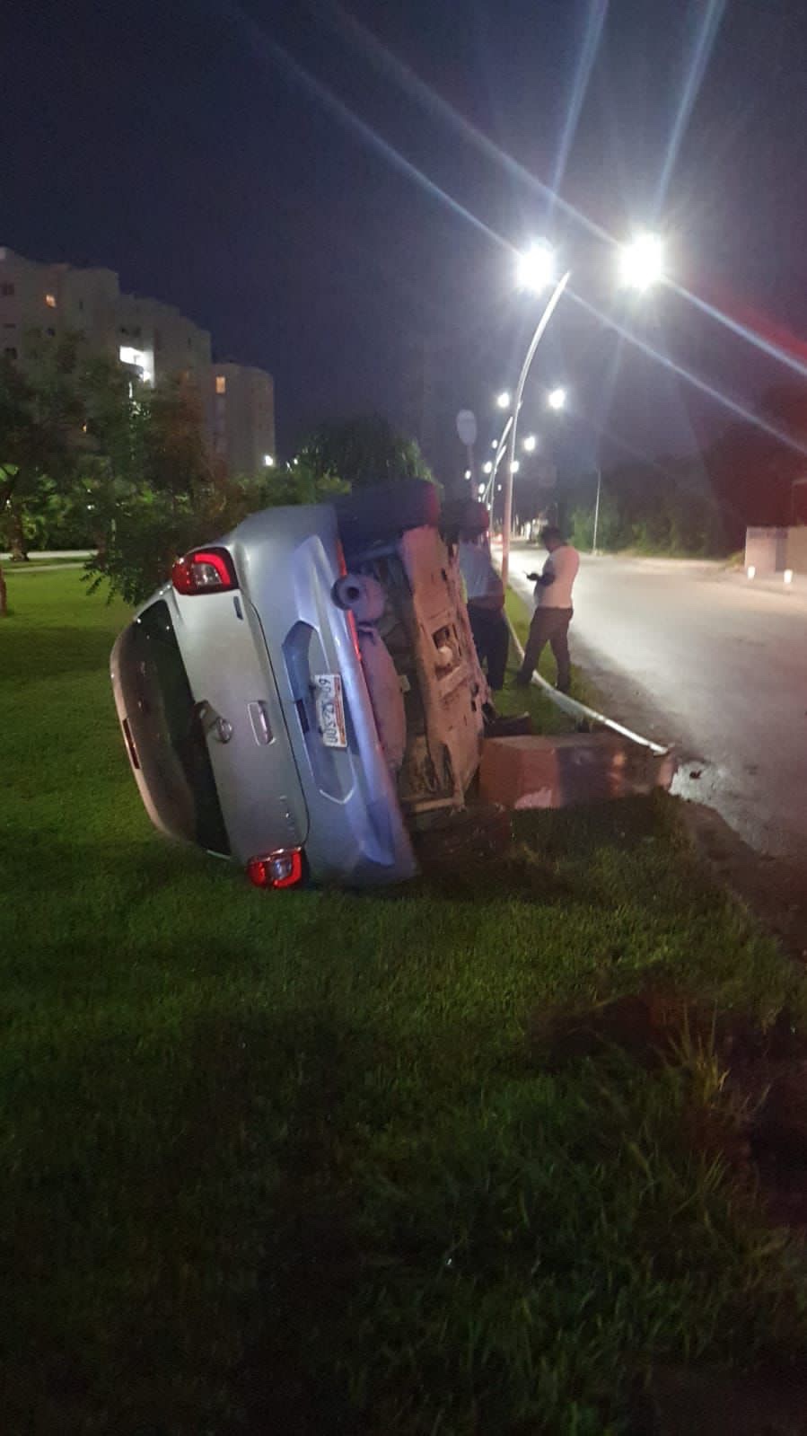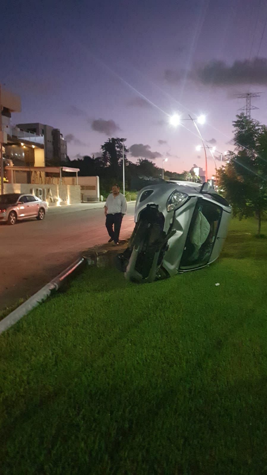 El conductor del vehículo tipo March color gris circulaba sobre la Av Huayacan en la Supermanzana 313 en dirección de Poniente a Oriente, y tras tomar en cuenta las condiciones de la vía , pierde el control de su direccion hacia su izquierda chocando con el poste metalico de alumbrado publico mismo que provoca su volcadura sobre su costado izquierdo.