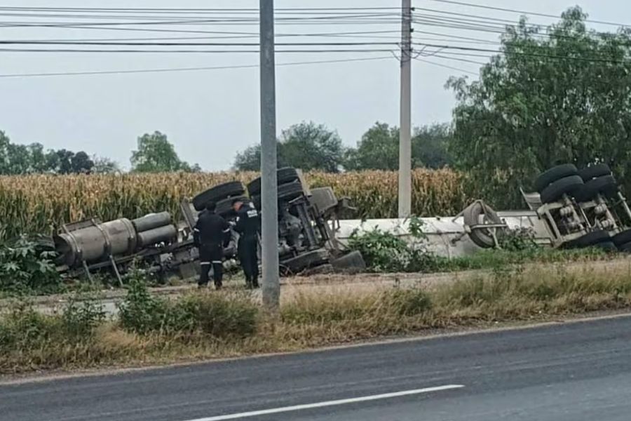 Hidalgo,-Una pipa que transportaba aproximadamente 45 mil litros de gas LP volcó este lunes sobre la carretera federal Jorobas–Tula, a la altura de la colonia El Llano, segunda sección, en el municipio de Tula de Allende, Hidalgo, lo que provocó una intensa movilización de cuerpos de emergencia y seguridad.