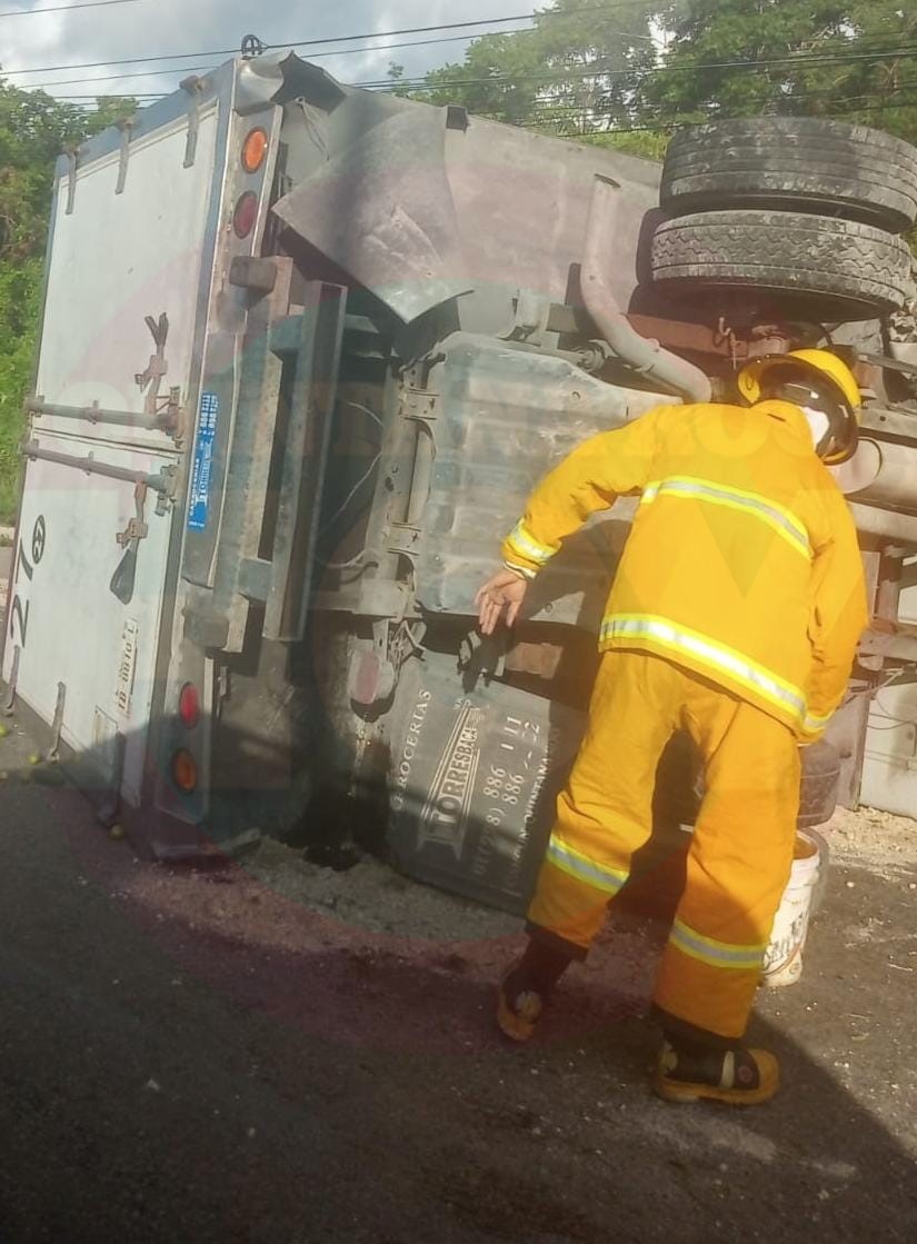 El accidente se registró la mañana de este viernes, cuando el conductor de una pesada unidad de 3 toneladas perdió el control y terminó volcando.
