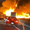 El Kia fue impactado por un Toyota Corolla que transitaba en la misma dirección. Como resultado del choque, el Seltos se salió de la vía hacia la derecha, mientras que el Corolla se subió al camellón central y chocó contra un poste de alumbrado público, volcándose sobre su parte superior.