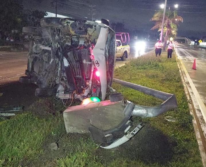 CANCÚN.- Una van de transporte turístico federal volcó la madrugada de este miércoles, cuando su conductor se dirigía hacia el centro de la ciudad sobre el bulevar Luis Donaldo Colosio.