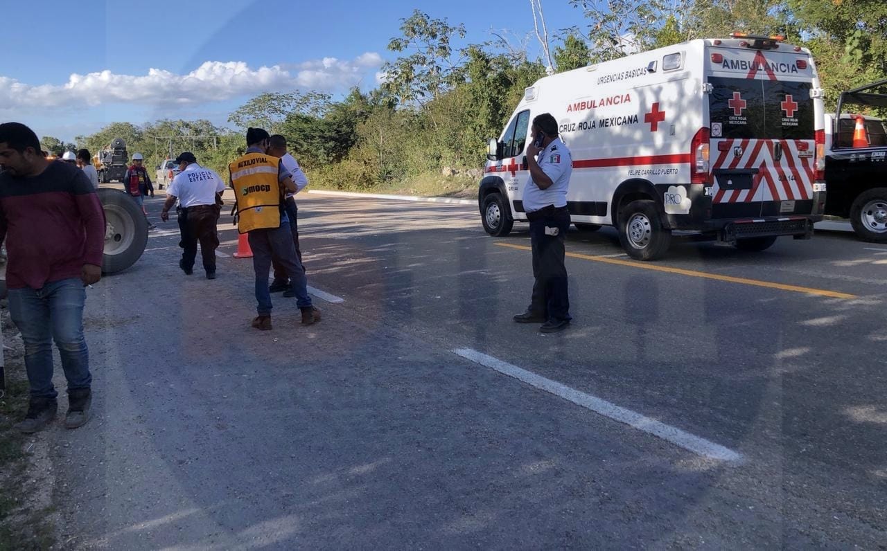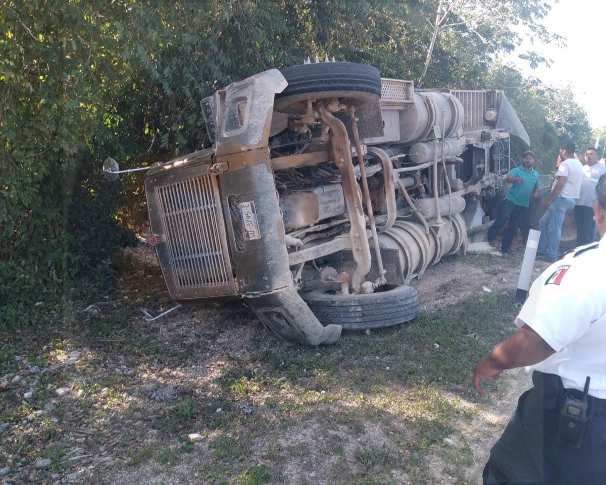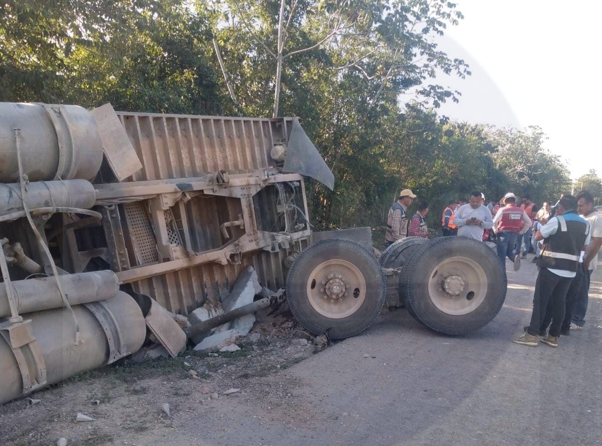 Vuelca volquete de obras del Tren Maya en Felipe Carrillo Puerto