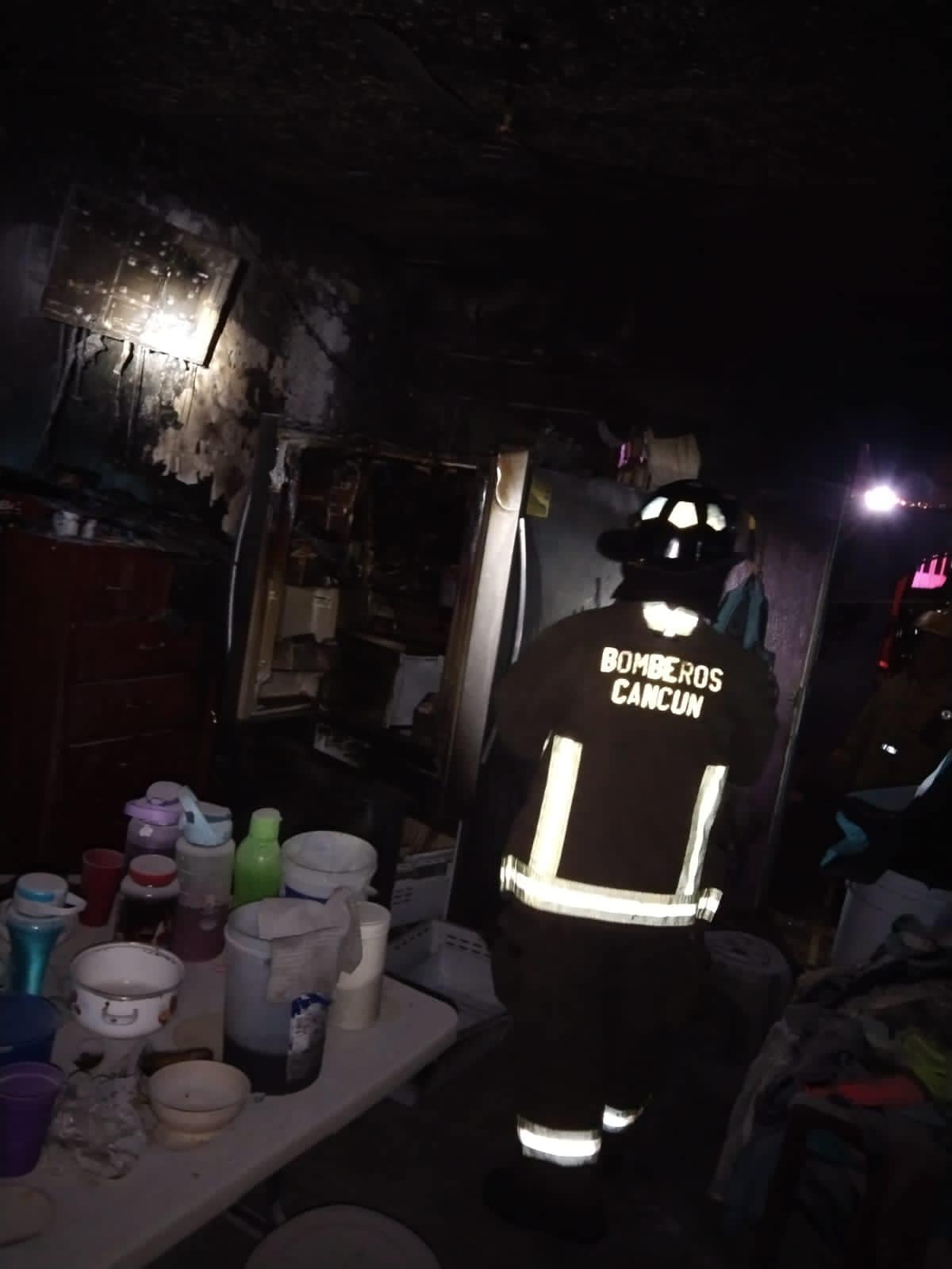 CANCÚN.-Cuerpo de Bomberos de Cancún dio a conocer a través de sus redes el incendio en un domicilio ubicado en la Región 103, manzana 100.