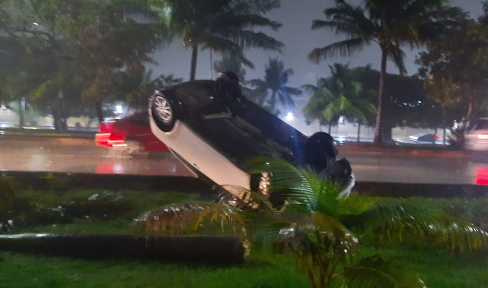 Los hechos ocurrieron alrededor de las 8:00 de la noche, cuando se reportó un accidente donde el vehículo Seat Ibiza blanco quedó volcado sobre el camellón central en la región 95.