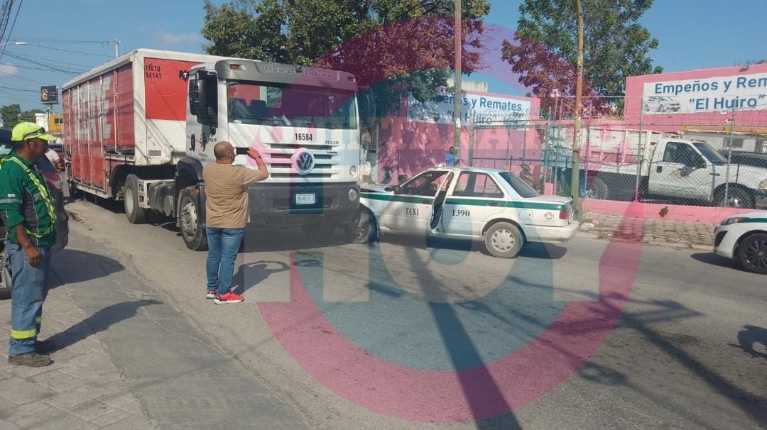 Cancún.- La tarde de este miércoles se registró un aparatoso choque entre las avenidas Chichén Itzá y Tepich, el cual fue ocasionado por la irresponsabilidad al volante por parte de la propietaria de un taxi.