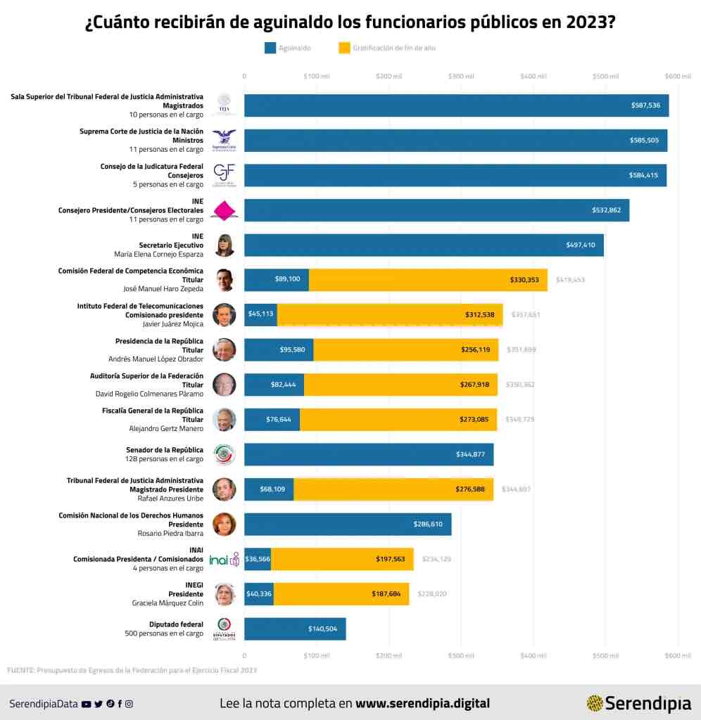 El aguinaldo de otros funcionarios en 2023 no será menor a 100 mil pesos, según lo dispuesto en el PEF.