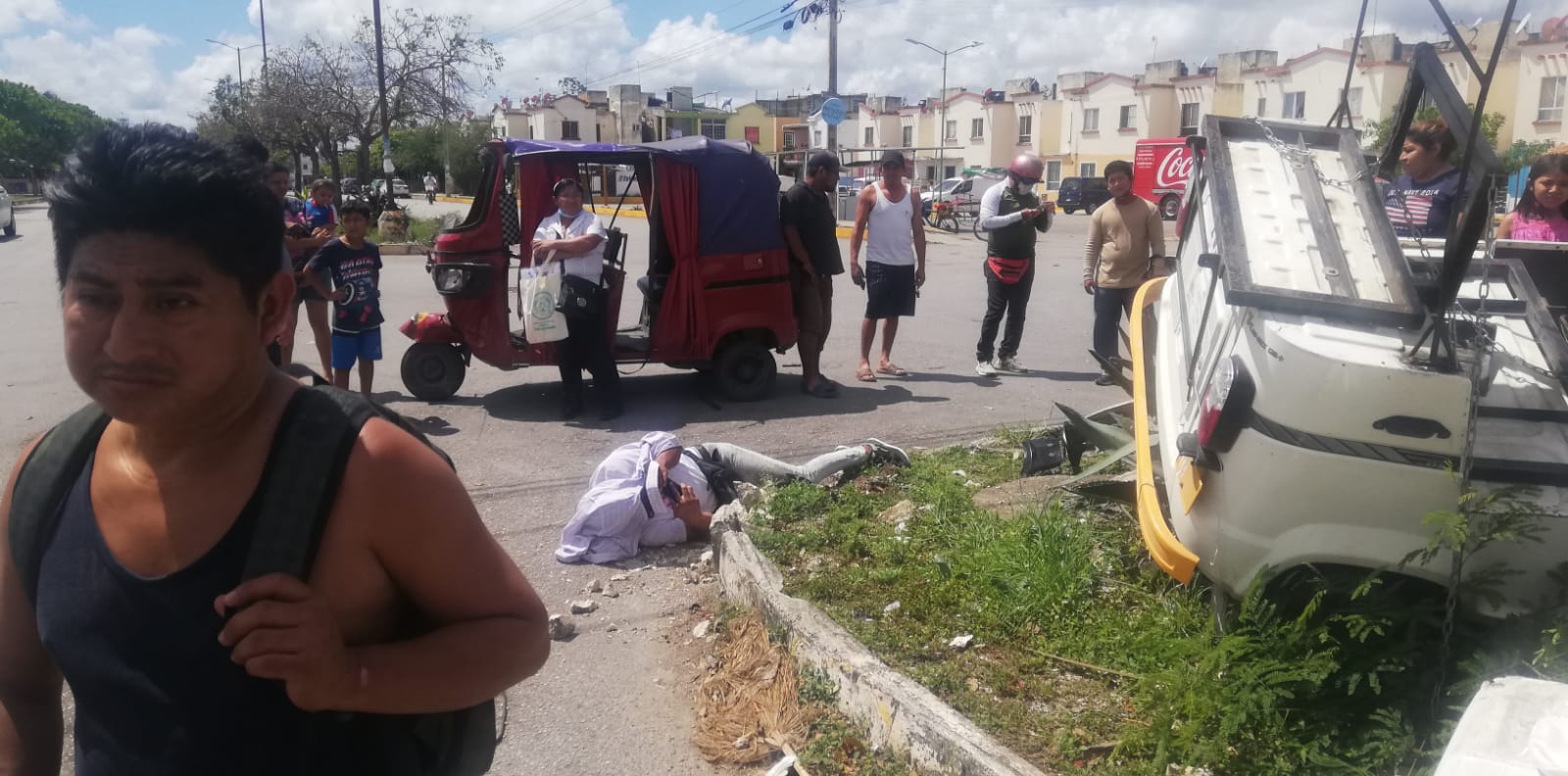 CANCÚN.- Un aparatoso accidente entre dos mototaxis dejó de gravedad a uno de los conductores, luego de que el impacto lo sacara volando de su unidad.