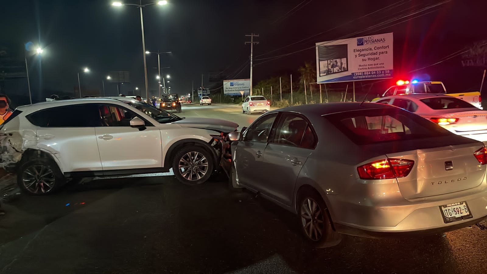 CANCÚN.- Un aparatoso accidente se reportó la noche de ayer en el Bulevar Luis Donaldo Colosio, frente al retorno del colegio Saint John’s.