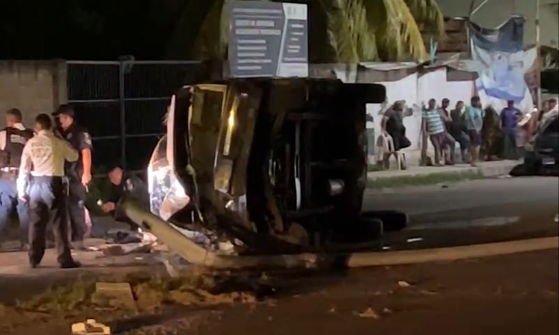 Una aparatosa volcadura se reportó la madrugada de hoy en avenidas de Chetumal.