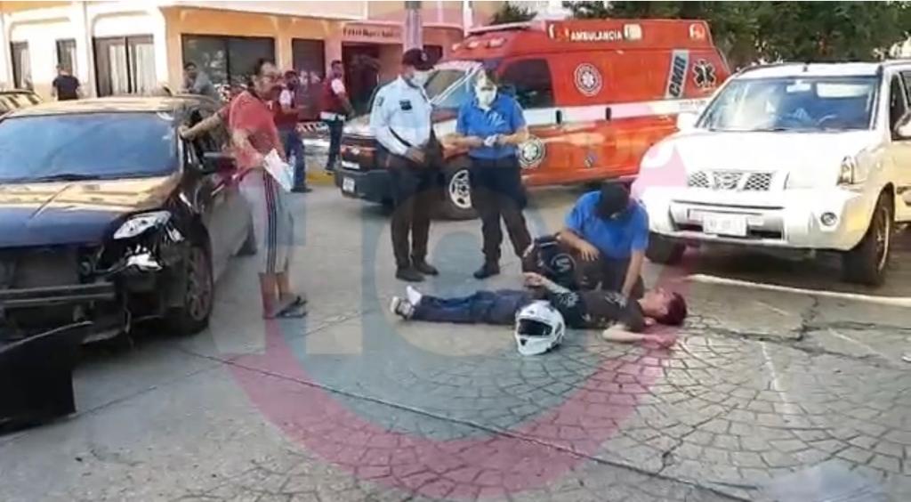 CANCÚN.-La mañana de hoy se registró un accidente entre un vehículo una motocicleta en la 25, en la avenida Sunyaxchen, a una cuadra de un conocido hospital.