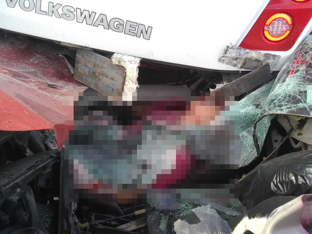 El coche un Mazda 3 rojo, avanzaba por esta vialidad con dirección al norte, cuando se le atravesó este autobús, que trataba de cruzar desde el retorno hacia el hotel mencionado. El automóvil quedó incrustado en la parte posterior de este autobús, con el lado del copiloto totalmente desecho.