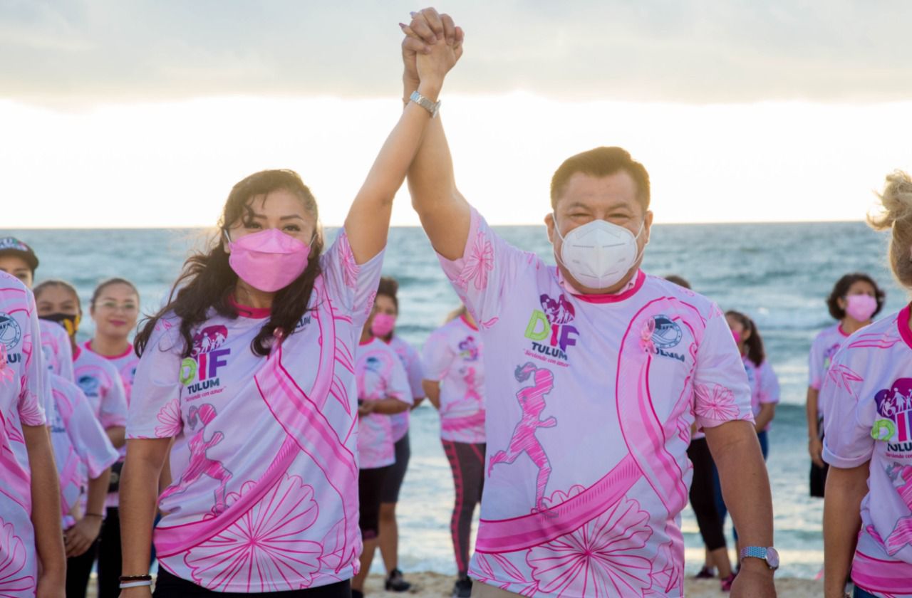 TULUM.- 200 corredoras y corredores se congregaron en las principales calles de Tulum para “despertar conciencias” contra el cáncer de mama y con ello adelantar los tratamientos que salvan vidas.