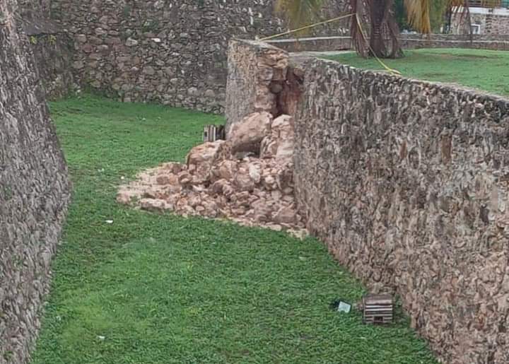 La mayor afectación registrada fue en el Fuerte de San Felipe, ya que una parte de la barda perimetral que colinda con el parque central Remigio Ramírez de la cabecera municipal se derrumbó.