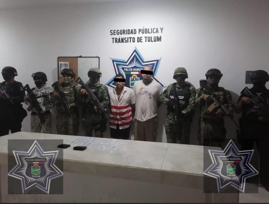 Tulum.- En distintos operativos implementados por autoridades de los tres niveles de gobierno, siendo Policía Municipal de Tulum, Guardia Nacional, SEDENA, SEMAR, Policía Quintana Roo y Fiscalía General del Estado; Continuando con las labores de inteligencia, fueron detenidos 2 presuntos narcomenudistas, en la zona costera de Tulum. Dichos masculinos, se identificaron con los nombres de Brayan Rafael “Z” de 25 años de edad y Ulises “S” de 31 años de edad, ambos originarios de la Ciudad de México.