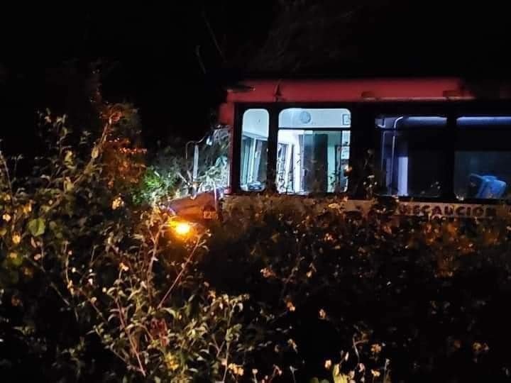 Al parecer el conductor del vehículo se le atravesó al autobús, por lo que al colisionar ambas unidades salieron proyectadas hacia la maleza, dejando un saldo de 8 personas lesionadas.