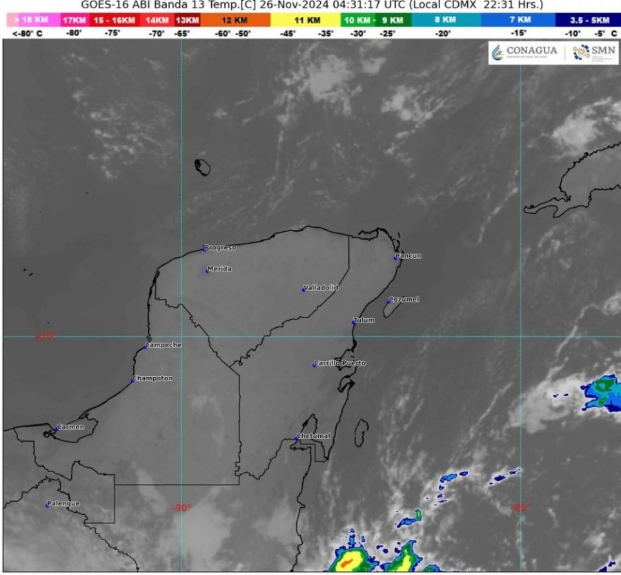 Chetumal.- El Servicio Meteorológico Nacional (SMN) anuncia que para la Península de Yucatán habrá cielo medio nublado durante el día, con chubascos en Quintana Roo, así como lluvias aisladas en Campeche y Yucatán.