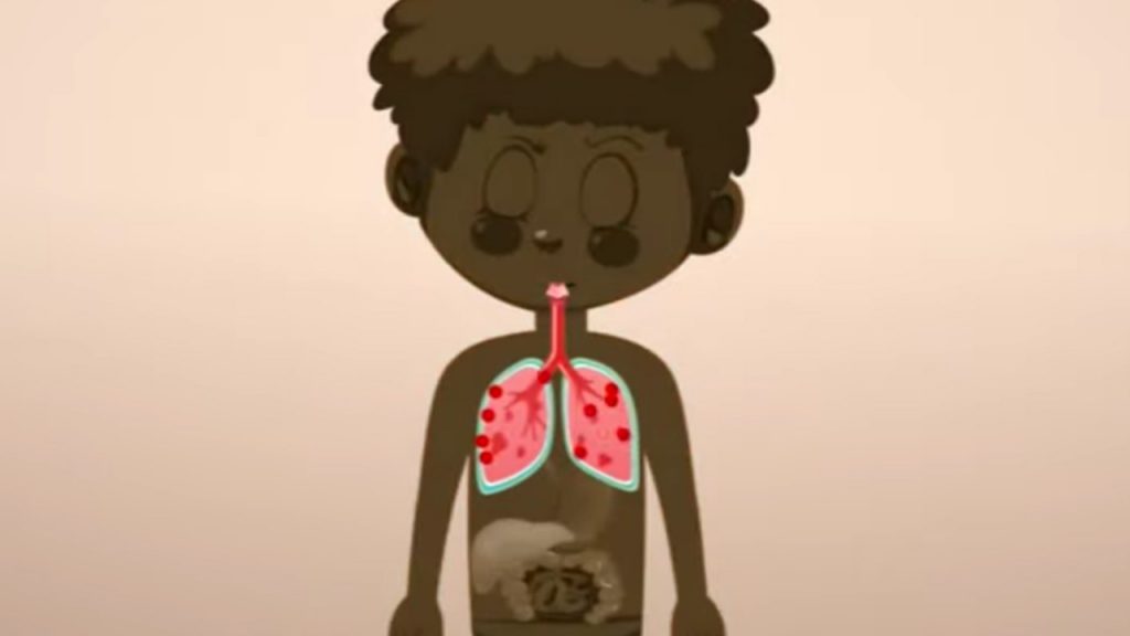 Esto sucede cuando, millones de células epiteliales han muerto y con ellas desaparece el revestimiento protector de los pulmones, eso significa que los alvéolos, pequeños sacos a través de los que se respira pueden ser infectados por bacterias que generalmente no son un gran problema. Los pacientes contraen neumonía, la respiración se vuelve difícil o incluso falla, y los pacientes necesitan respiradores para sobrevivir.