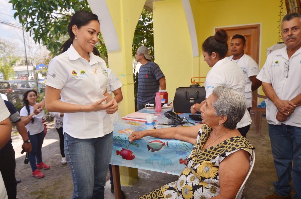 Chiquilá. –Mediate el acercamiento de servicios médicos, actividades de prevención, detección de enfermedades y estilos de vida saludables, la Secretaría de Salud continúa brindando a la gente más y mejores oportunidades de acceso a la atención de calidad, destacó su titular Alejandra Aguirre Crespo, al encabezar la jornada de salud en esta comunidad del Municipio de Lázaro Cárdenas.