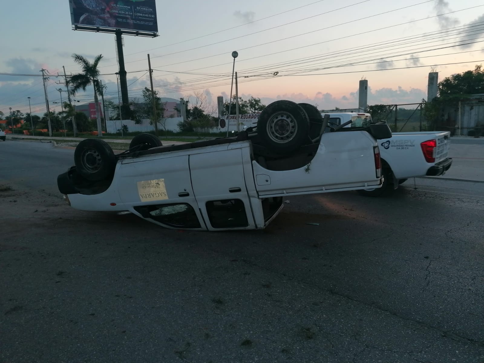 CANCÚN. Un fuerte accidente se registró la mañana de este lunes sobre el Bulevar Luis Donaldo Colosio en dirección al Aeropuerto Internacional de Cancún a escasos metros de la Delegación Alfredo V. Bonfil, donde una camioneta en la que viajaban a bordo tres personas terminó volcada, por lo que loa ocupantes quedaron atrapados al interior de la unidad.