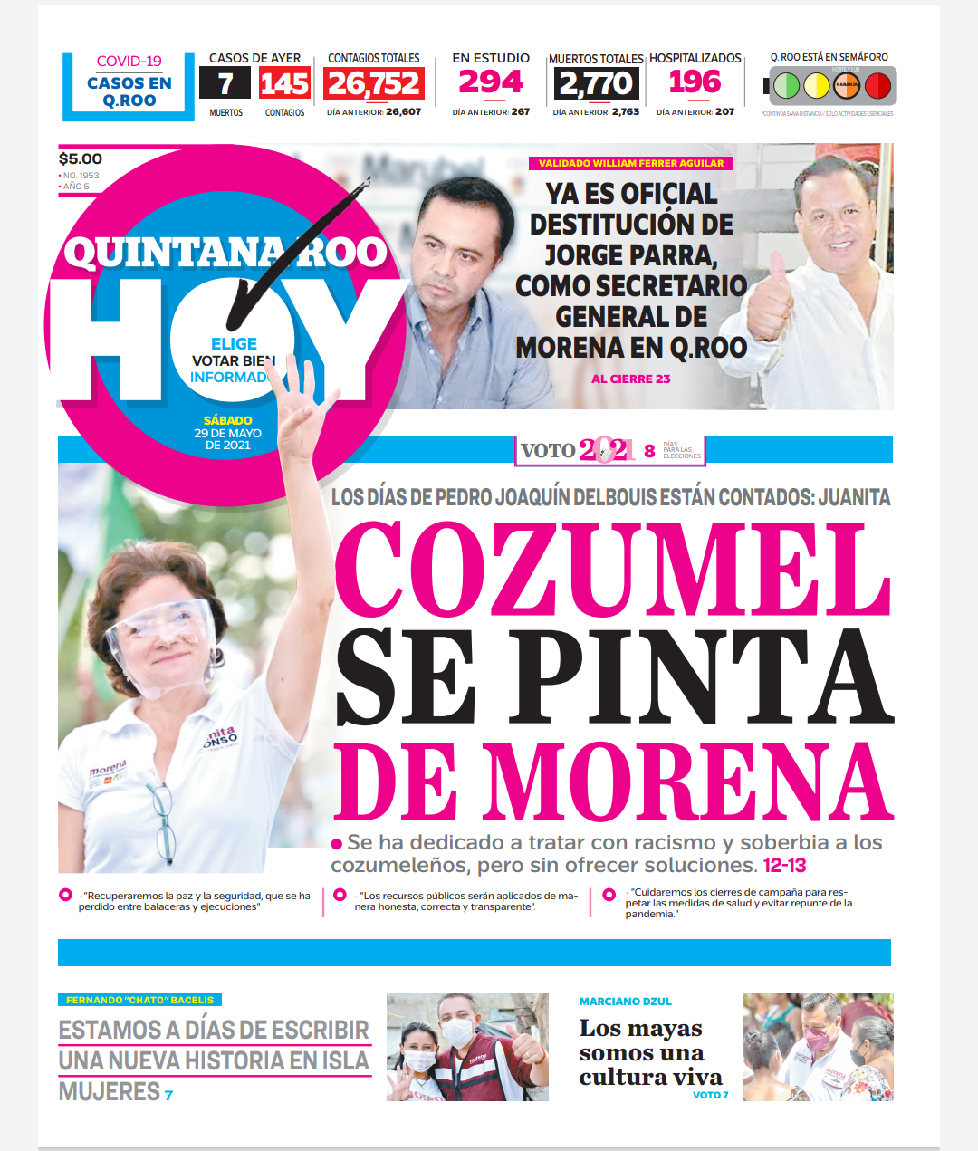 COZUMEL. “Desafortunadamente desde el primer día, el discurso del de enfrente ha sido el de insultos, racismo y los mismos cozumeleños están muy molestos y ofendidos por esta forma de expresarse, por eso somos los ‘morenos’ quienes les ganaremos a ellos”, dijo en entrevista para Quintana Roo Hoy la candidata a la presidencia municipal de Cozumel, por la coalición “Juntos Haremos Historia”, integrada por Morena-PVEM-PT-MAS, Juanita Alonso Marrufo.