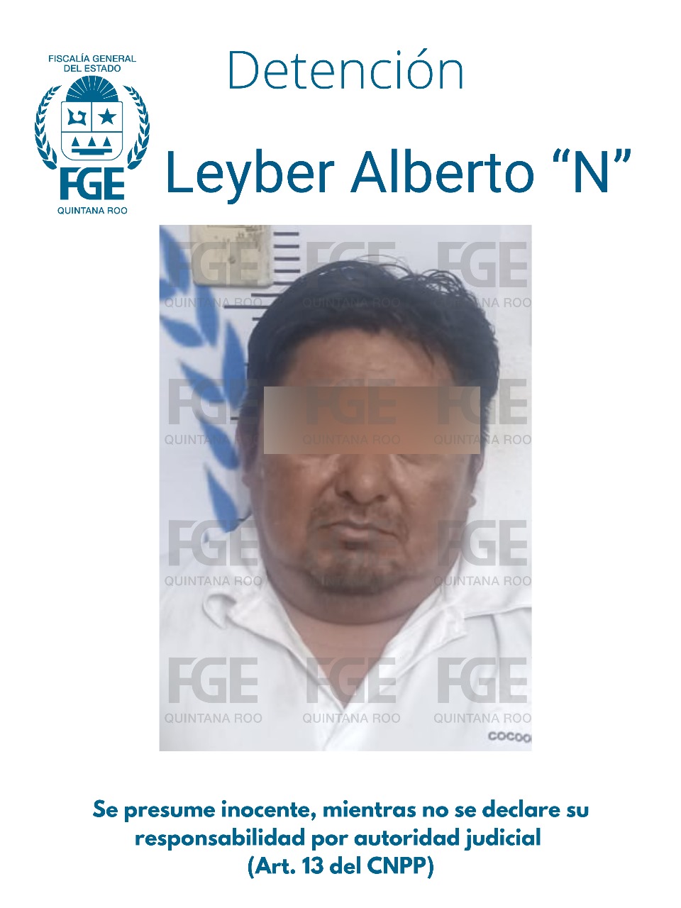 Isla Mujeres.– La Fiscalía General del Estado de Quintana Roo cumplimentó una orden de aprehensión a Leyber Alberto “N” por su probable participación en el delito de violación en agravio de una adolescente.