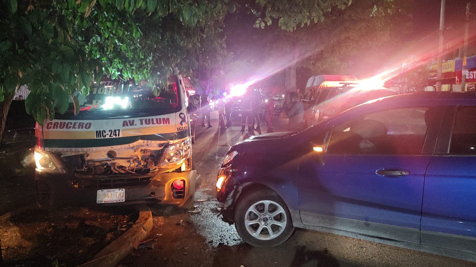 Cancún.- Siete personas lesionadas fue el saldo de un choque entre una camioneta particular y una van de transporte público, ocurrido la noche de ayer en la avenida Francisco I. Madero y la calle 113 en esta ciudad.