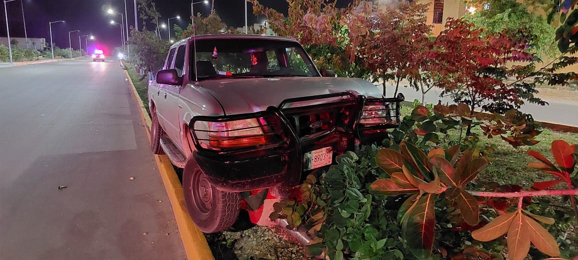 Playa del Carmen.- La noche de ayer una persona dejó abandonada su camioneta, luego de que impactó y derribó un poste ubicado en el camellón central, en el fraccionamiento El Edén de esta ciudad.