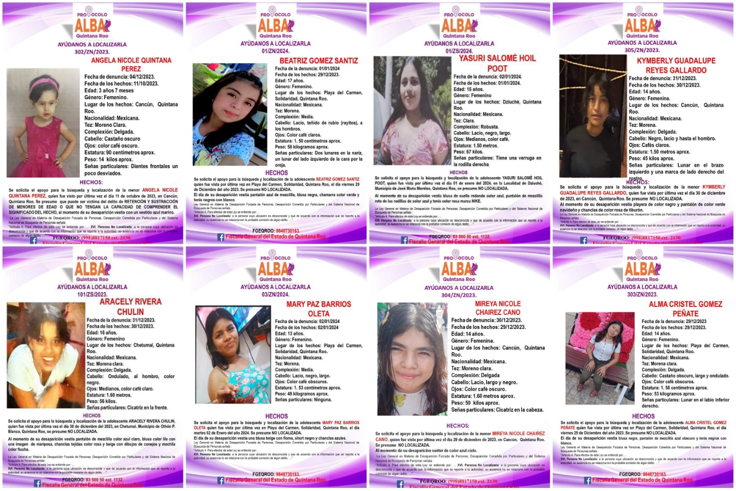 El 29 de diciembre se activaron los Protocolo Alba por 3 jovencitas, 1 de Cancún y 2 más de Solidaridad.