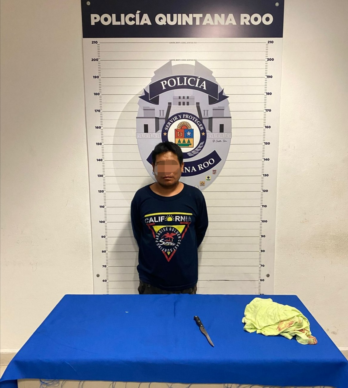 La detención se realizó cuando elementos de la Policía Preventiva recibieron un reporte de lesionado por arma blanca en la Supermanzana 89, manzana 5, sobre Diagonal Tulum, por lo que se trasladaron a la zona.