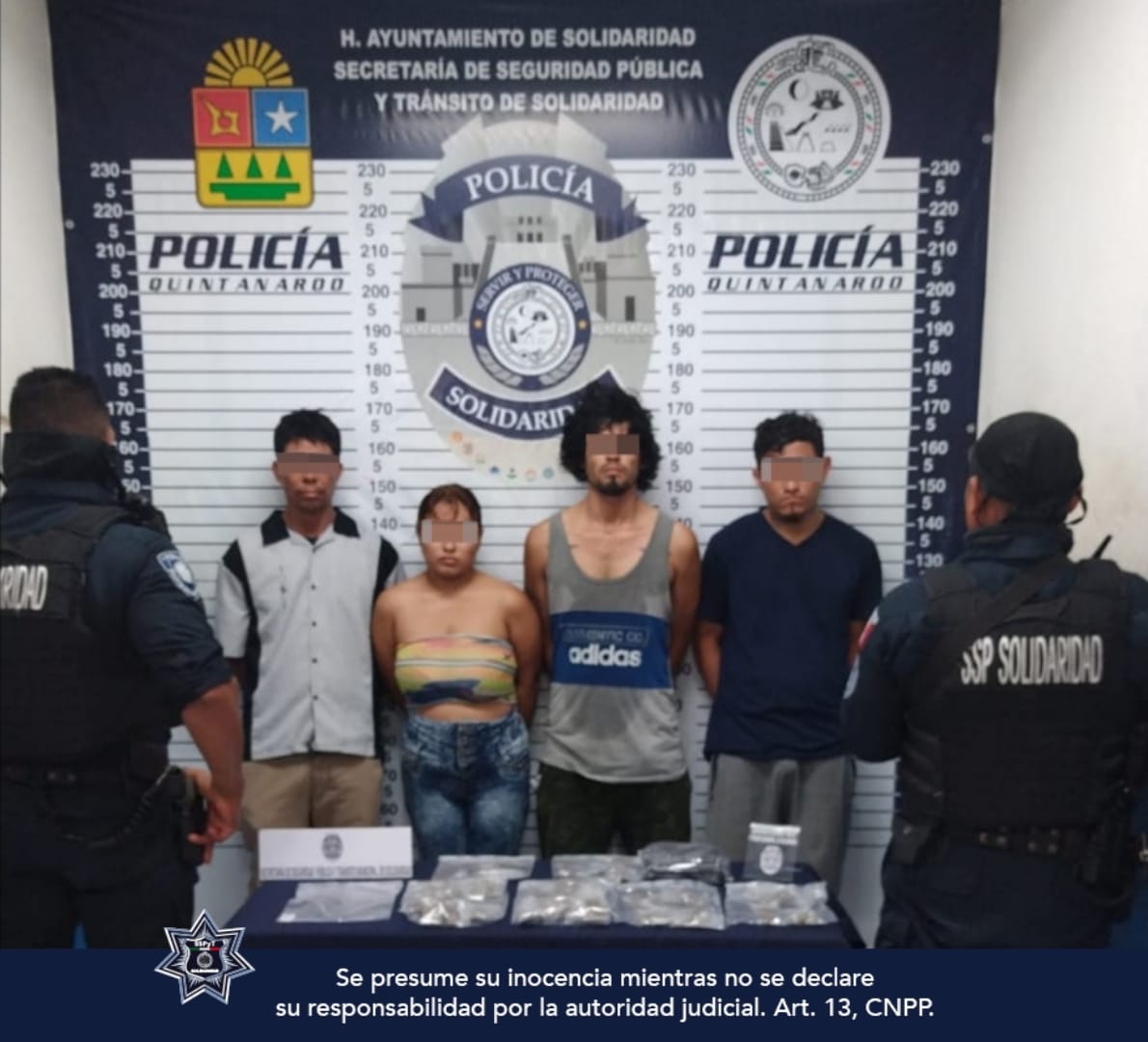 PLAYA DEL CARMEN.- Policías de la Secretaría de Seguridad Pública y Tránsito Municipal de Solidaridad aseguraron a 4 personas en posesión de 56 bolsitas con posibles narcóticos en una acción de respuesta inmediata como parte del reforzamiento de la seguridad en la colonia Colosio.